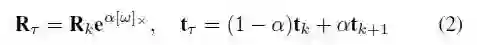 其中R,t通过timestamp相邻的两个时刻k,k+1的位姿进行内插给定: