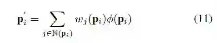 同时该点也会受到附近的node,N(pi),的影响,被改变后的pi点定义为