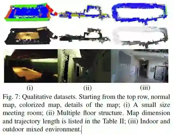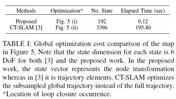 时间连续轨迹表达的提出为现代多传感器融合SLAM提供了更高的精度和效率。然而除了这些优势,由于全局优化的需求造成的一些问题阻碍了这类系统实时和长周期的应用。文章提出了一种基于连续时间轨迹的稠密的以地图为主的SLAM方法来解决以上问题。提出的系统和传统连续时间轨迹SLAM(CT-SLAM)方法类似,不同点在于通过使用全局一致的地图而不是对于全局轨迹的优化。该方法在闭环检测的时间复杂度上不依赖于操作时间,依赖于闭环检测前它已经探索的空间。所以比传统的CT-SLAM更加适合于长周期的操作。另外,这种方法使用surfel模型表示地图,所以减少了重建稠密地图的不确定性。文章使用全局一致地图而不是进行全局轨迹优化而且通过使用surfel融合有效减少了LiDAR的噪声。