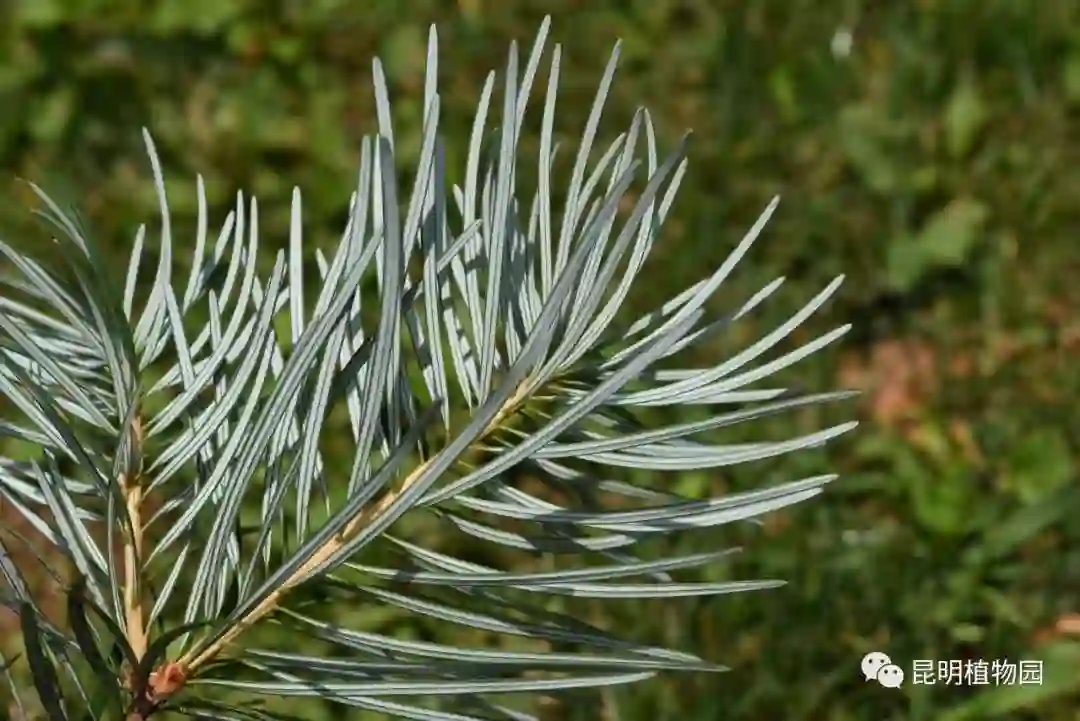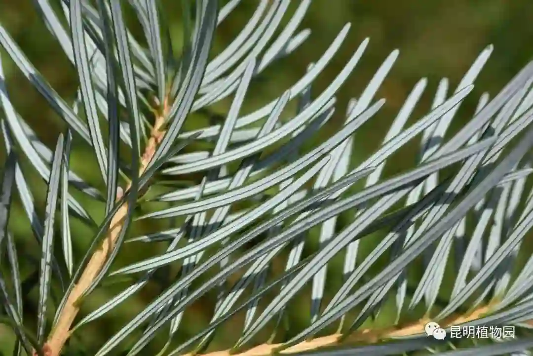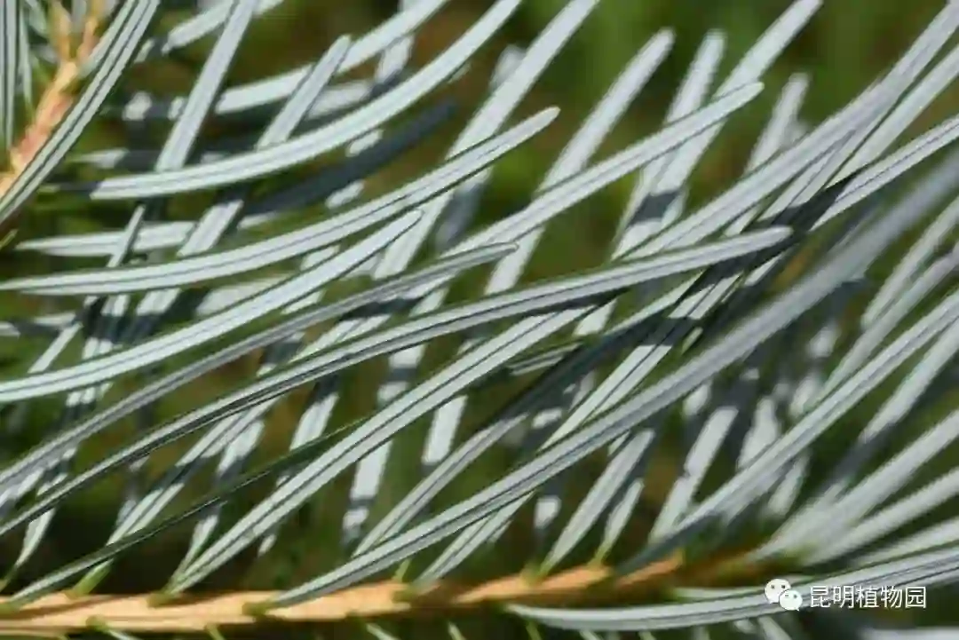 闪亮的银杉叶部分,由两条气孔带组成