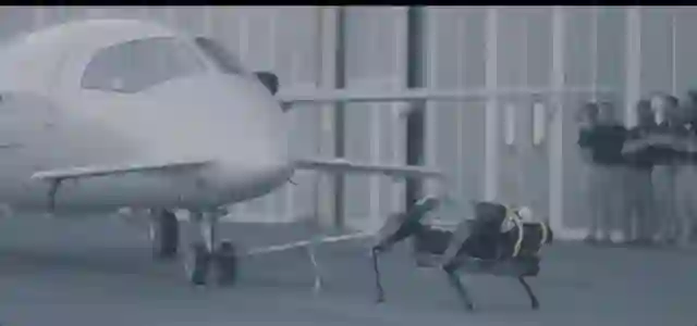 这个机器人可能要比那只狗的动力更强,因为它曾经可是拉动过一架小型客机,还拉动到了10米以上。