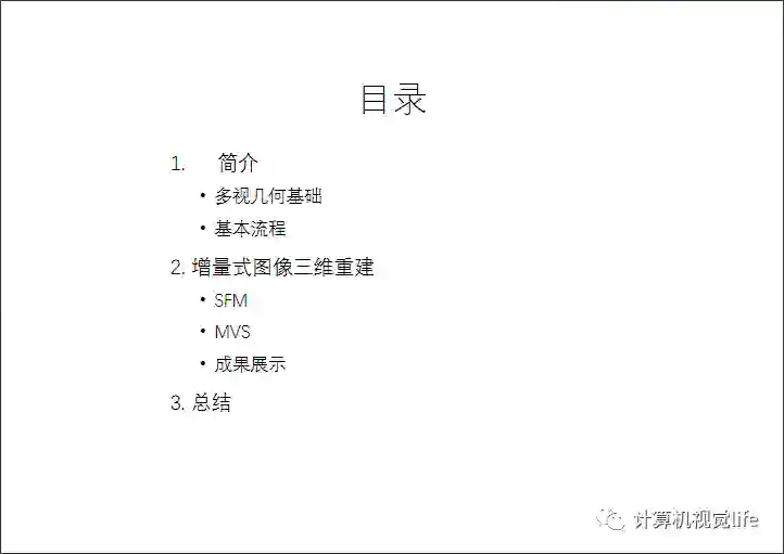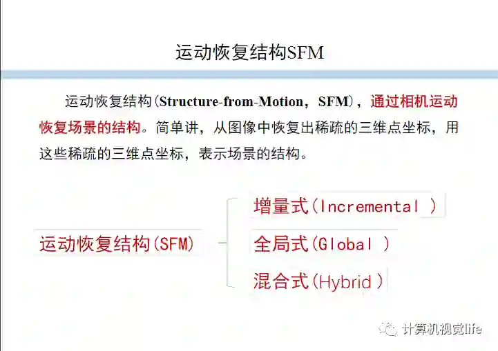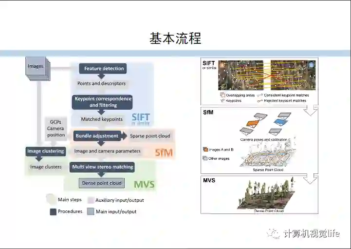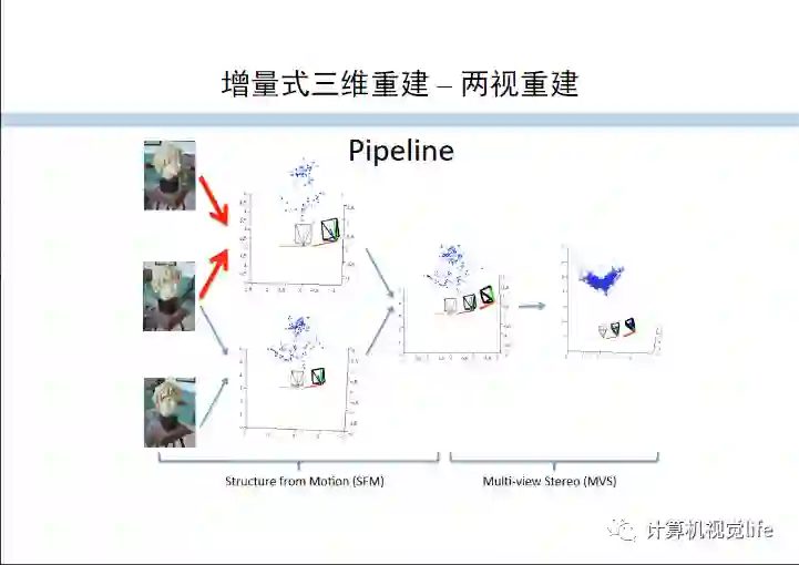 内容:多视角图像三维重建原理及稀疏重建(SFM)、密集重建(MVS)的相关知识