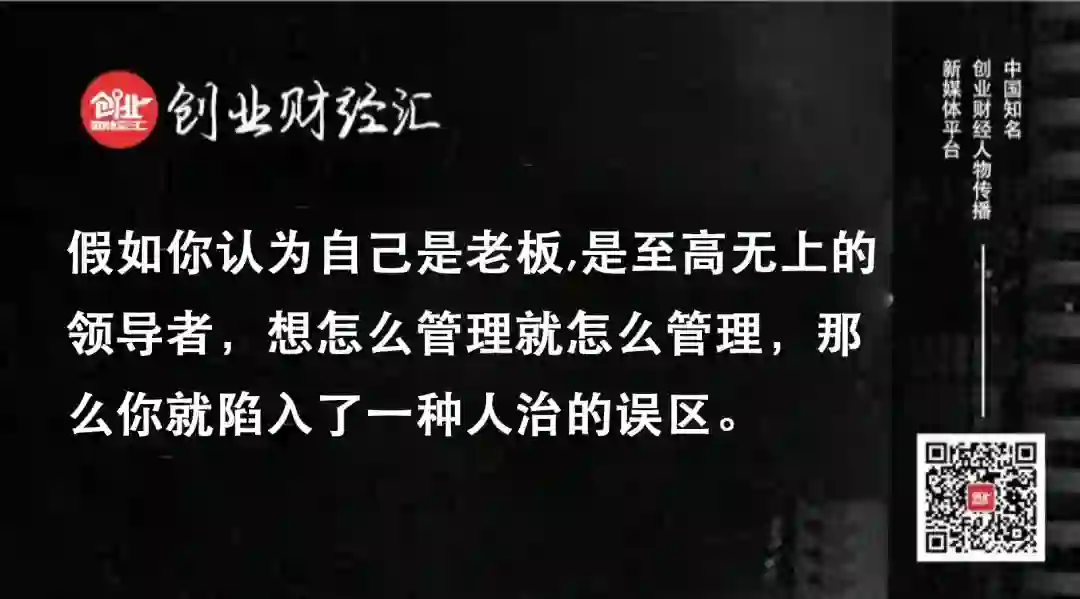 假如你认为自己是老板,是至高无上的领导者,想怎么管理就怎么管理,那么你就陷入了一种人治的误区。在今天这个时代,一家人治的创业公司是没有活路的——至少长期来看就是如此。