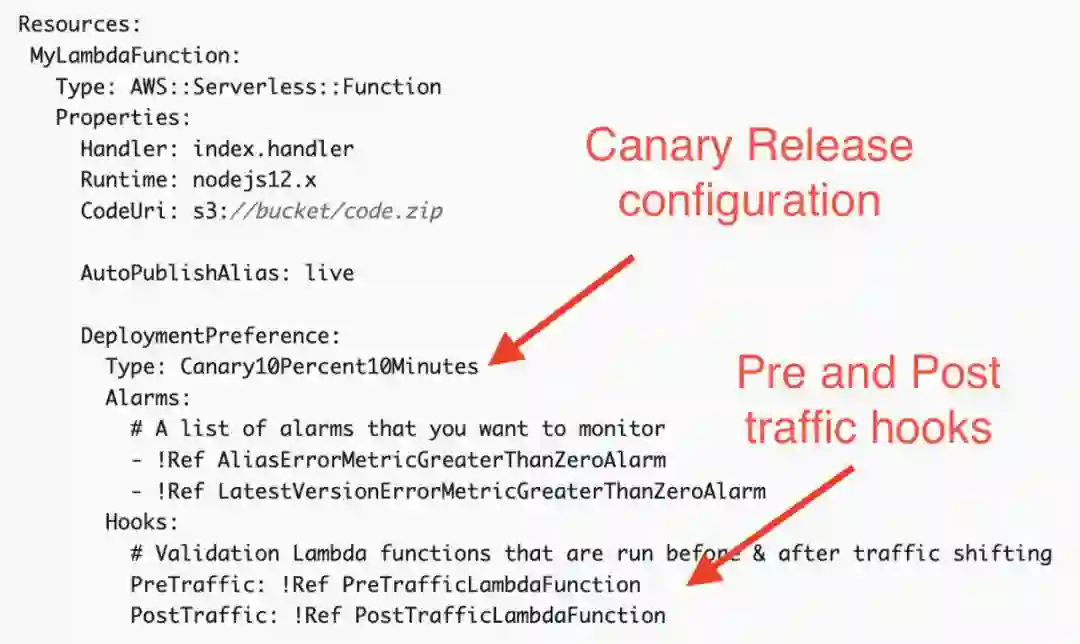 例如,当我们在 AWS 中开发容器或无服务器工作负载时,可以通过几行配置轻松创建我们喜欢的部署策略。