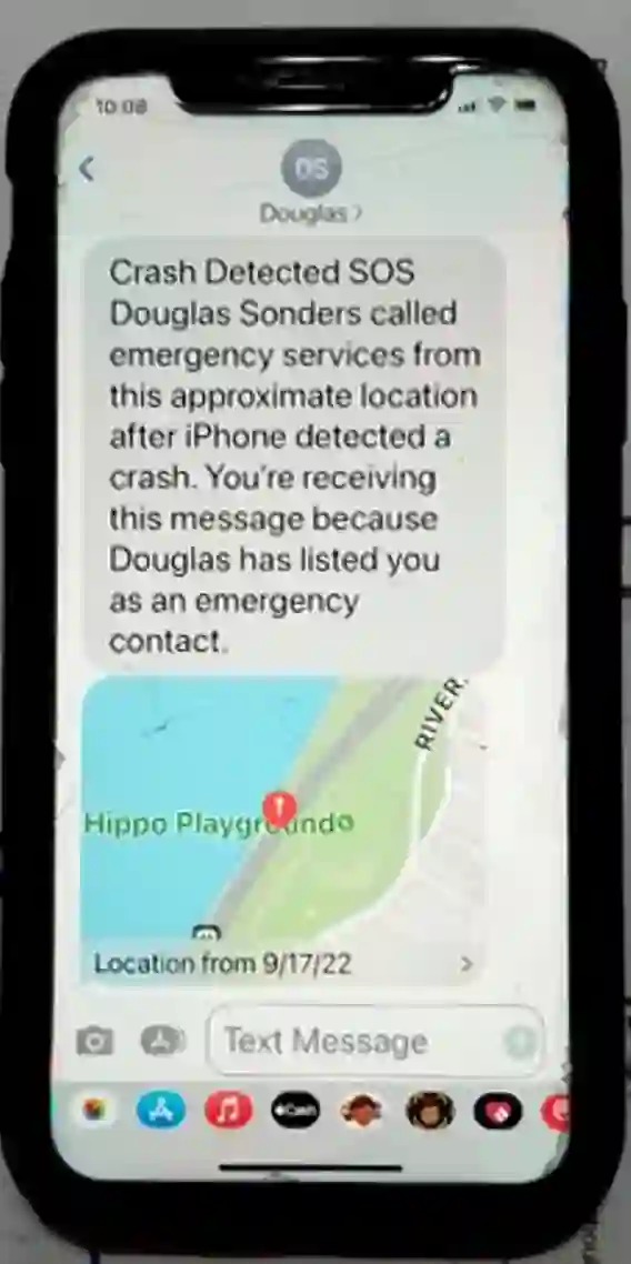 与此同时,iPhone 的碰撞检测被触发,不仅报了警,还给他所有的紧急联系人发了短信。