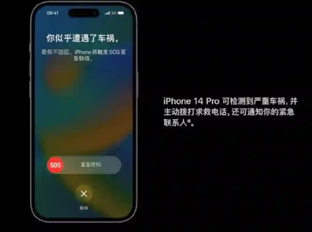 新款手机iPhone 14系列、智能手表Watch Series 8、SE和Ultra上推出了应对车祸的「碰撞检测」功能。