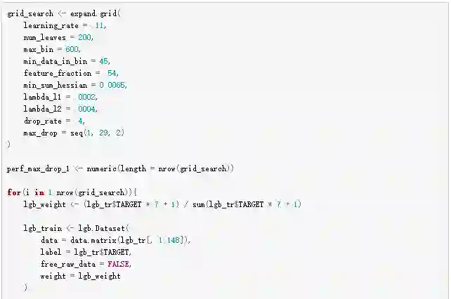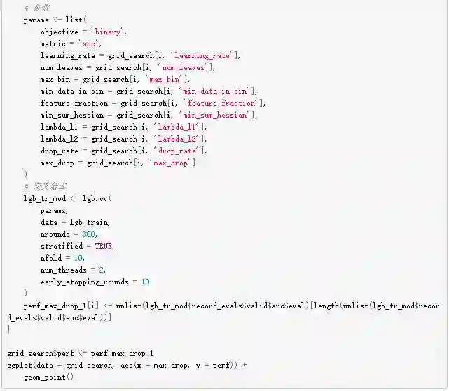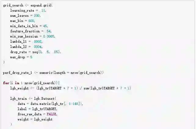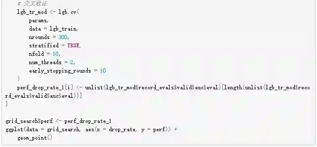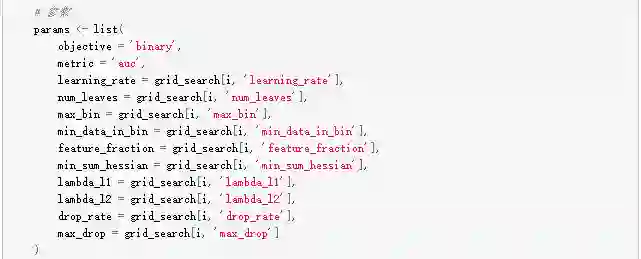 并行运算:由于lightgbm包可以通过设置相应参数进行并行运算,因此不再调用doParallel与foreach包进行并行运算;