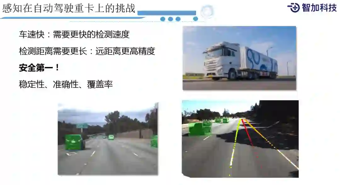 刚才讲了很多感知技术,在传统自动驾驶上,会用到的一些方法。在我们的重卡自动驾驶中,还会有一些特殊的需求: