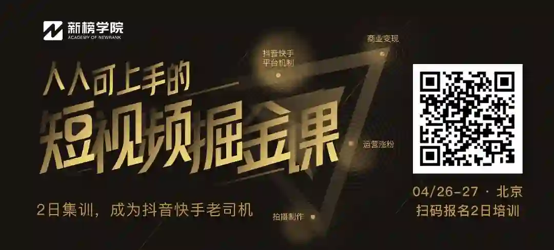 历经2个月的筹备,我们的短视频掘金课,即将在本周五、周六登陆北京。了解新榜学院“一贯作风”的朋友都知道,我们至少备足了600页ppt,来了的学员都要“虐爽”。