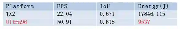 ShuffleDet 在 TX2 和 Ultra96 FPGA 平台上的性能比较