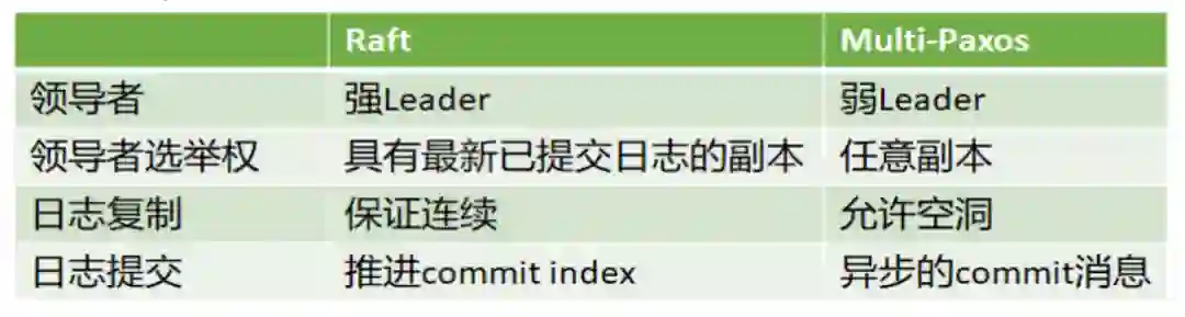 Raft与Multi-Paxos有着千丝万缕的关系,下面总结了Raft与Multi-Paxos的异同。