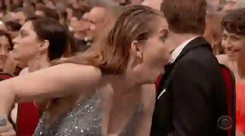 接下来就是当晚最重要、也是最具争议的时刻:前白宫新闻发言人Sean Spicer突然自带讲台现身颁奖礼,对他“著名”的“观众最多”(特朗普就职典礼被媒体评价冷清时Spicer回复说这是总统就职典礼观众人数最多的一次)的梗进行自我调侃。Giphy的人马上把这一幕做成了GIF形式。Giphy的天才之处不在于将视频原样照搬,而是在观众的各种震惊的表情中寻找闪光点。他们在美剧《副总统》的演员Anna Chlumsky那里找到了。她的整个身体都扭曲成了一个OMG的表情——眼睛瞪得像灯笼,脖子静脉喷张,一边从座位上站起来想要为这场奇怪的表演找一个更好的观看角度。几分钟之内,编辑人员就把3秒钟的剪辑上传到Giphy上面。这个GIF几乎马上就火了起来。颁奖礼结束一周后其浏览量已经超过了1300万。