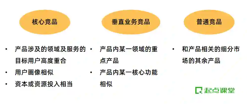 竞品的类型可以分为核心竞品,垂直业务竞品、普通竞品;在选取竞品时,注意结合目的选择合适的竞品类型。