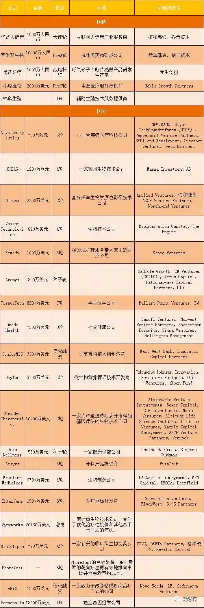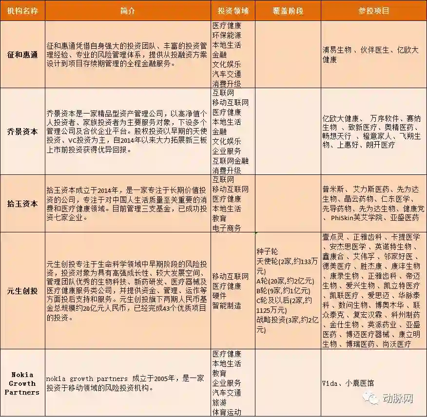 涉及医疗器械、健康机构、医疗媒体、辅助生殖、新药研发等领域。