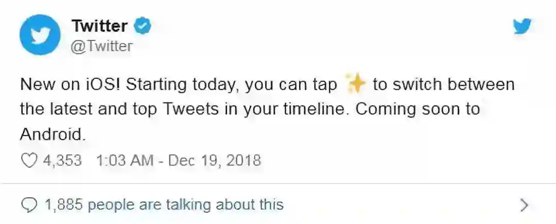 据悉,用户可以在应用的右上角看到一个新的“闪烁”功能--一个四角星的形状,当点击之后页面内容就会变成时间排序,如果用户频繁地使用该功能那么系统将会将其设置为默认状态。