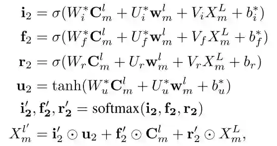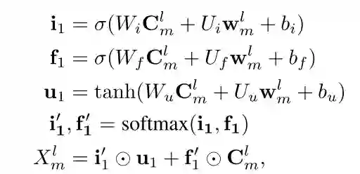 CNN使用维度为 的矩阵作为卷积核,其中 代表卷积核窗口大小;CNN使用不同大小窗口的卷积核进行特征提取,当窗口大小为2时,表示抽取bigram特征,大小为 时,表示抽取 特征。卷积操作后得到的 句子特征表示为 , 将对应于 通过attention操作融入lexicon信息,attention部分的计算过程如下: