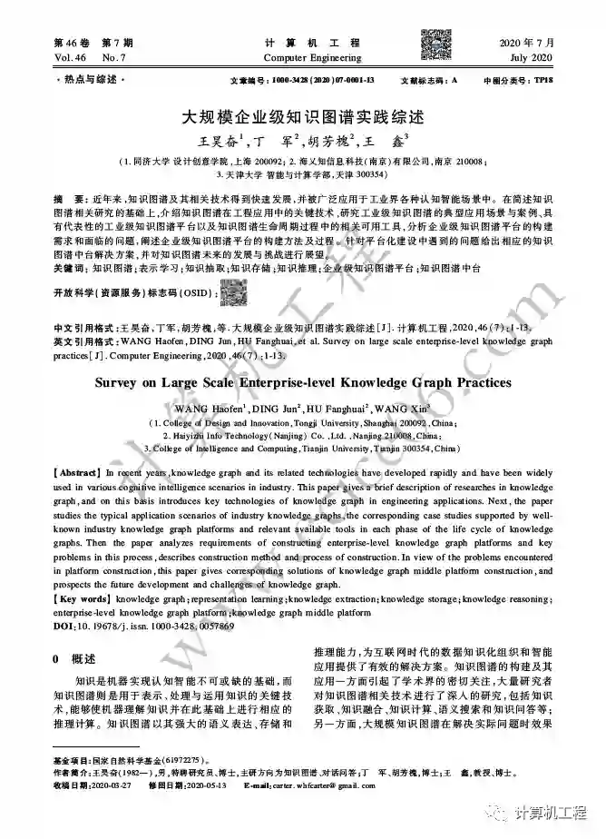 引用本文:王昊奋, 丁军, 胡芳槐等. 大规模企业级知识图谱实践综述[J]. 计算机工程, 2020, 46(7): 1-13.