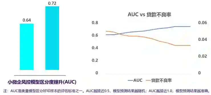 现在这两个领域对于同一批用户如果要建模,属于纵向联邦学习,建立纵向联邦学习的应用,最后就取得了很好的效果,AUC指标大为上升,不良率大为下降。