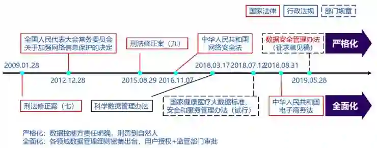 中国对数据隐私和保护也进行了非常细致的研究,从2009年到2019年有一系列动作,而且越来越严格,经过长期的讨论和民众的交互,可能在今年年底到明年年初会有一系列正式的法律出台。