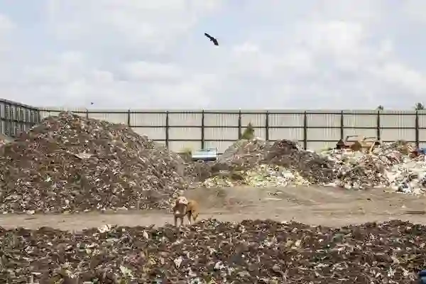 一处堆肥厂存放的未分类垃圾