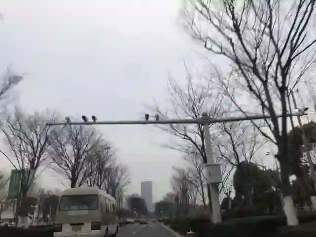 下午 17:20 左右。这段路上的车道之间以实线为主,只有到路口分道才会出现虚线供车辆选择直行或左右转。