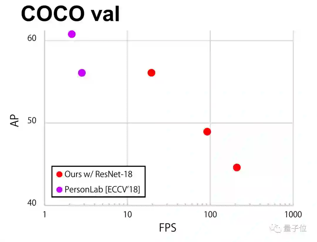 在COCO数据集上也不虚,相比谷歌PersonLab能在更高帧数下运行。