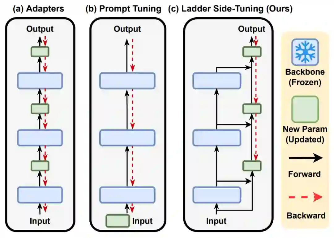 最近的一篇论文《LST: Ladder Side-Tuning for Parameter and Memory Efficient Transfer Learning》