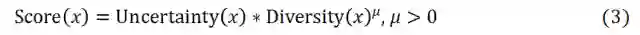 基于分布度Diversity对不确定性Uncertainty的加权程度不同,我们记token分值如下:
