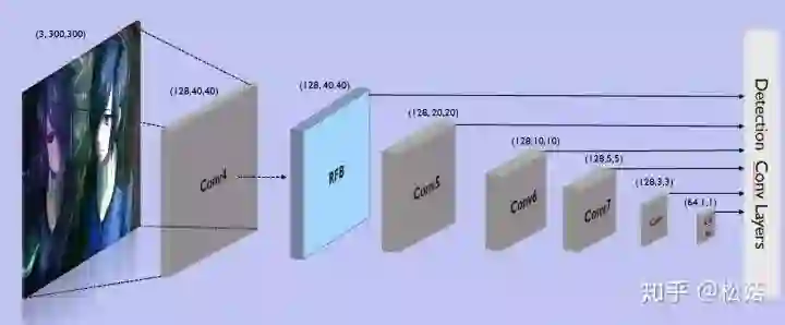 RFB模块只使用了一个,稍加修改,没有太多的变体设计,更加简单