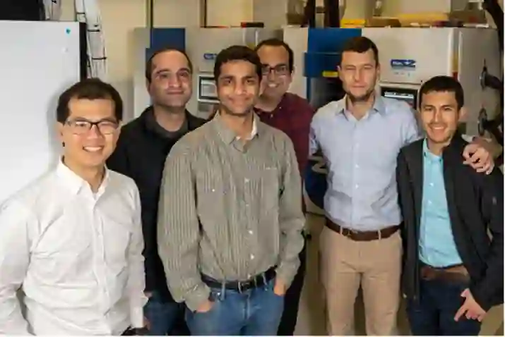 研究团队从左至右包括斯坦福大学教授 William Chueh,丰田汽车研究所科学家 Muratahan Aykol,斯坦福大学博士生 Aditya Grover、Peter Attia,斯坦福大学教授 Stefano Ermon 和 TRI 科学家 Patrick Herring。(图片来源:Farrin Abbott)