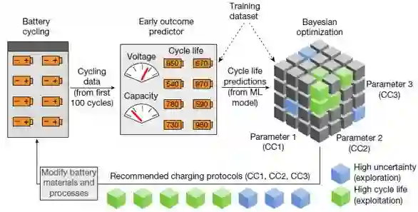 最典型的例子,就是对锂离子电池的材料选择、电池制造和工作运行等过程进行控制优化。通常人们需要对锂离子电池的寿命进行评估,但是这样的实验往往会花费数月乃至数年的时间,而且参数的调整、空间和样品的多样性更使得实验进一步延长。