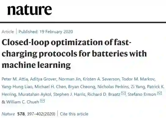 Attia, P.M., Grover, A., Jin, N. et al. Closed-loop optimization of fast-charging protocols for batteries with machine learning. Nature 578, 397–402 (2020).