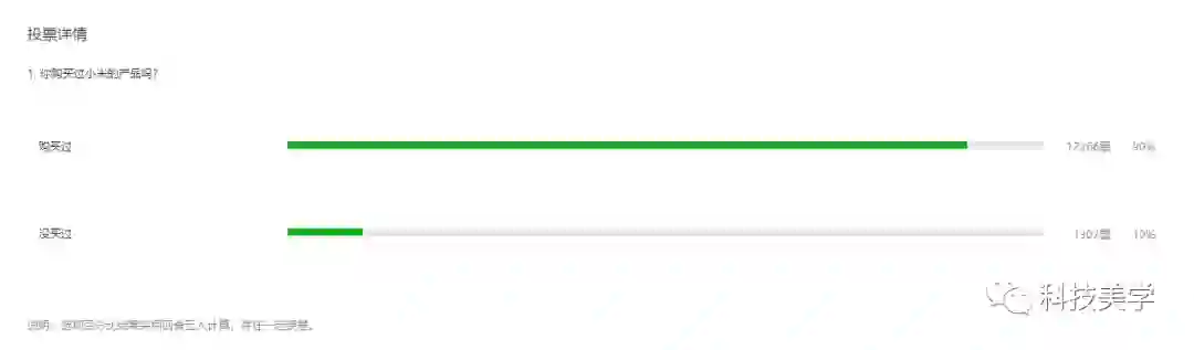 一万三千多人投票,90%的同学投了买过,看来小米的生态链渗透的还是很不错嘛。