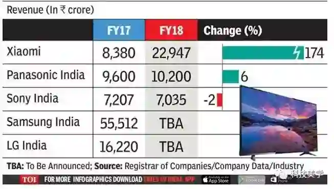 从2017年底,小米开始超越三星,成为印度出货量最高的智能手机厂商。如今,该公司在印度的营收超过了索尼和松下当地业务的总和。