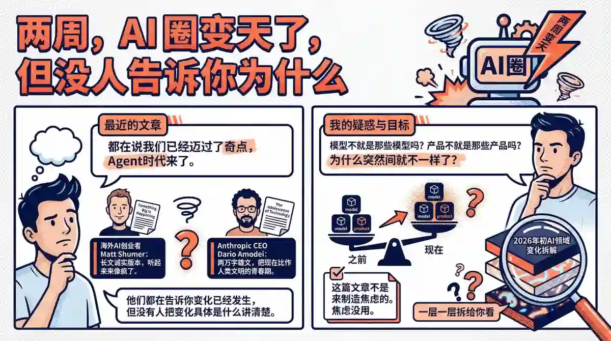 我想做的事很简单:把 2026 年初 AI 领域到底发生了哪些变化,一层一层拆给你看。然后你自己判断要不要跟进。
