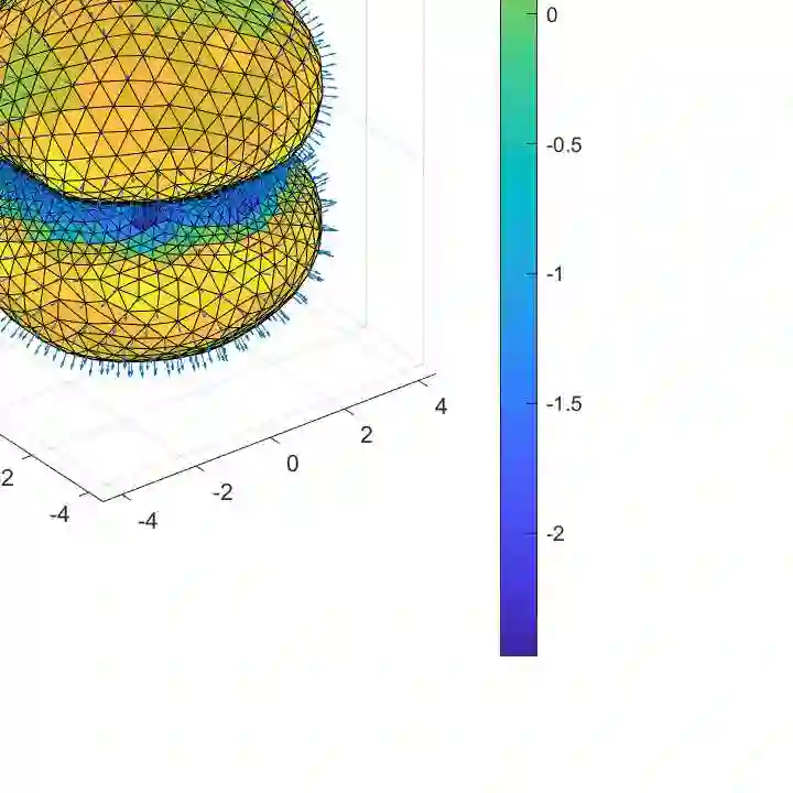 This paper studies an evolving bulk--surface finite element method for a model of tissue growth, which is a modification of the model of Eyles, King and Styles (2019). The model couples a Poisson equation on the domain with a forced mean curvature flow of the free boundary, with nontrivial bulk--surface coupling in both the velocity law of the evolving surface and the boundary condition of the Poisson equation. The numerical method discretizes evolution equations for the mean curvature and the outer normal and it uses a harmonic extension of the surface velocity into the bulk. The discretization admits a convergence analysis in the case of continuous finite elements of polynomial degree at least two. The stability of the discretized bulk--surface coupling is a major concern. The error analysis combines stability estimates and consistency estimates to yield optimal-order $H^1$-norm error bounds for the computed tissue pressure and for the surface position, velocity, normal vector and mean curvature. Numerical experiments illustrate and complement the theoretical results.