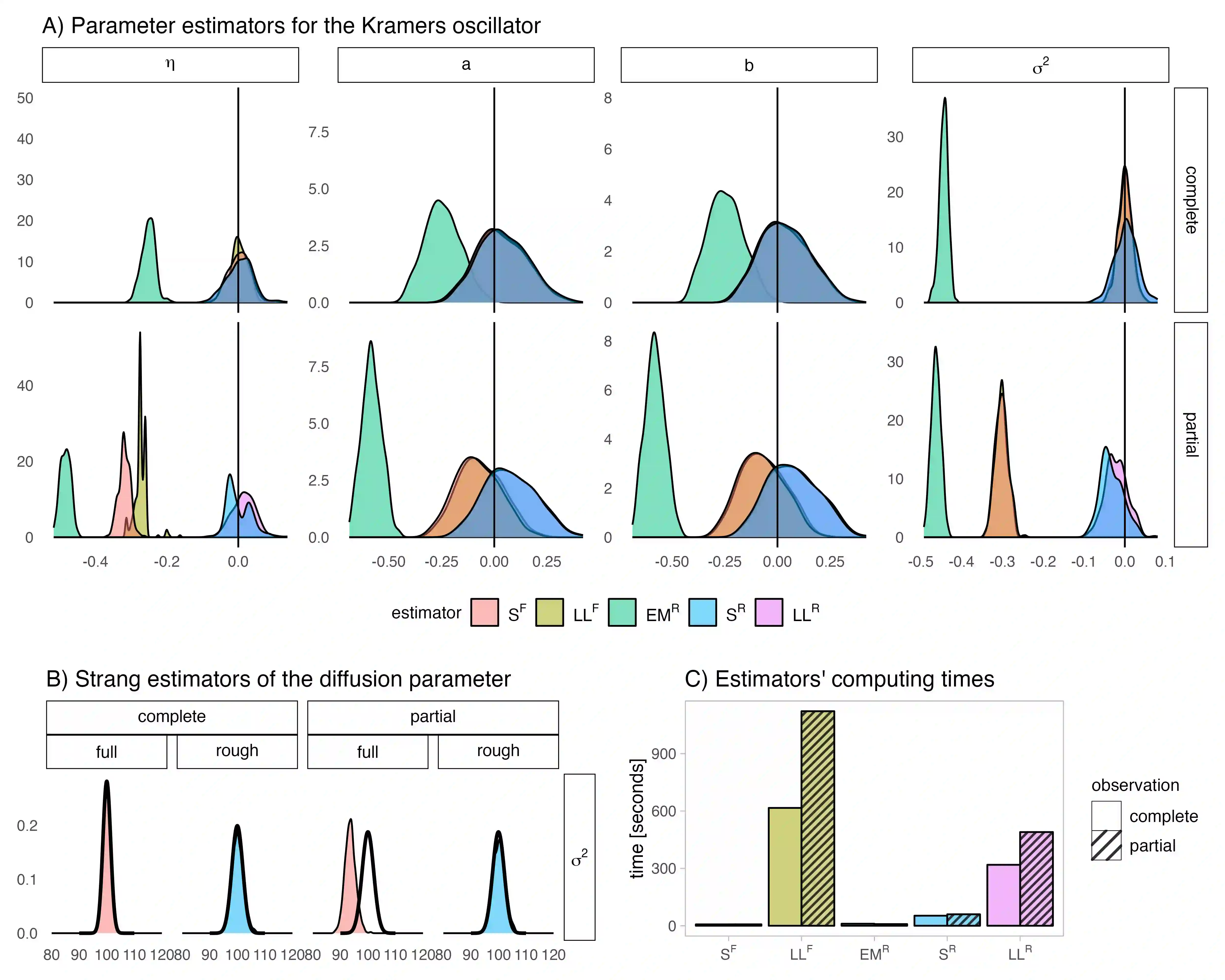 We address parameter estimation in second-order stochastic differential equations (SDEs), prevalent in physics, biology, and ecology. Second-order SDE is converted to a first-order system by introducing an auxiliary velocity variable raising two main challenges. First, the system is hypoelliptic since the noise affects only the velocity, making the Euler-Maruyama estimator ill-conditioned. To overcome that, we propose an estimator based on the Strang splitting scheme. Second, since the velocity is rarely observed we adjust the estimator for partial observations. We present four estimators for complete and partial observations, using full likelihood or only velocity marginal likelihood. These estimators are intuitive, easy to implement, and computationally fast, and we prove their consistency and asymptotic normality. Our analysis demonstrates that using full likelihood with complete observations reduces the asymptotic variance of the diffusion estimator. With partial observations, the asymptotic variance increases due to information loss but remains unaffected by the likelihood choice. However, a numerical study on the Kramers oscillator reveals that using marginal likelihood for partial observations yields less biased estimators. We apply our approach to paleoclimate data from the Greenland ice core and fit it to the Kramers oscillator model, capturing transitions between metastable states reflecting observed climatic conditions during glacial eras.