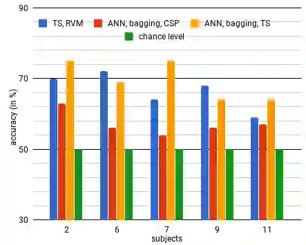 翻译:这项工作探索了解码模拟语音(IS)信号的可能性,这些信号可用于创建人类-计算机界面(HCI)的新设计。由于生成 EEG 信号的基本过程未知,各种特征提取方法,以及不同的神经网络模型,都被用于接近数据分布和对IS信号进行分类。根据实验结果,具有混合和共变矩阵转变特征的反馈式NN模型显示与其他现有方法相比,其性能最高。相比之下,使用了三种公开的数据集。我们报告说,在两个数据集中,用于解码长短单词的平均分类精确度为休息状态和想象状态之间的80%、96%和80%。这些结果表明,可以将大脑信号(休息状态期间生成的)与IS脑信号区分开来。根据实验结果,我们建议,可以使用文字长度和复杂性高精确度解码IS信号,并且可以用IS信号设计一个BCI系统进行计算机互动。这些想法和结果为基于商业级别的IS BCI系统的发展提供了方向,该系统可以用于人类的日常生活互动。