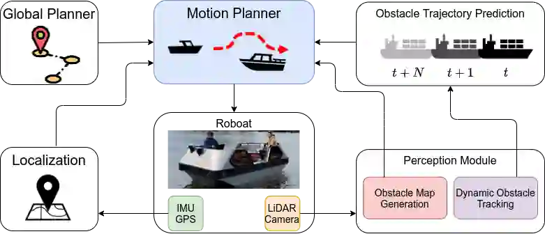 翻译:在无结构的城市运河中,与其他船舶的监管-认识互动对于避免碰撞和社会合规至关重要。在本文件中,我们提出一个法规,说明自动水面船舶(ASV)的动态规划框架,其中考虑到动态和静态障碍。我们的方法以地方模型预测同流层控制为基础(LMPCC),以产生运动计划,满足实时的动态动力和碰撞限制,同时包括法规意识。为了在规划阶段纳入法规,我们提议一项成本功能,鼓励遵守描述与其他船舶(类似于COLlision避免海上污染)互动的规则。这些法规对于使自动水面船舶的行为与其他船舶的行为具有可预测性和社会合规性至关重要。我们对照基线方法对框架进行比较,并表明更有效的法规合规性,避免移动障碍。此外,我们提出室外环境的实验结果。