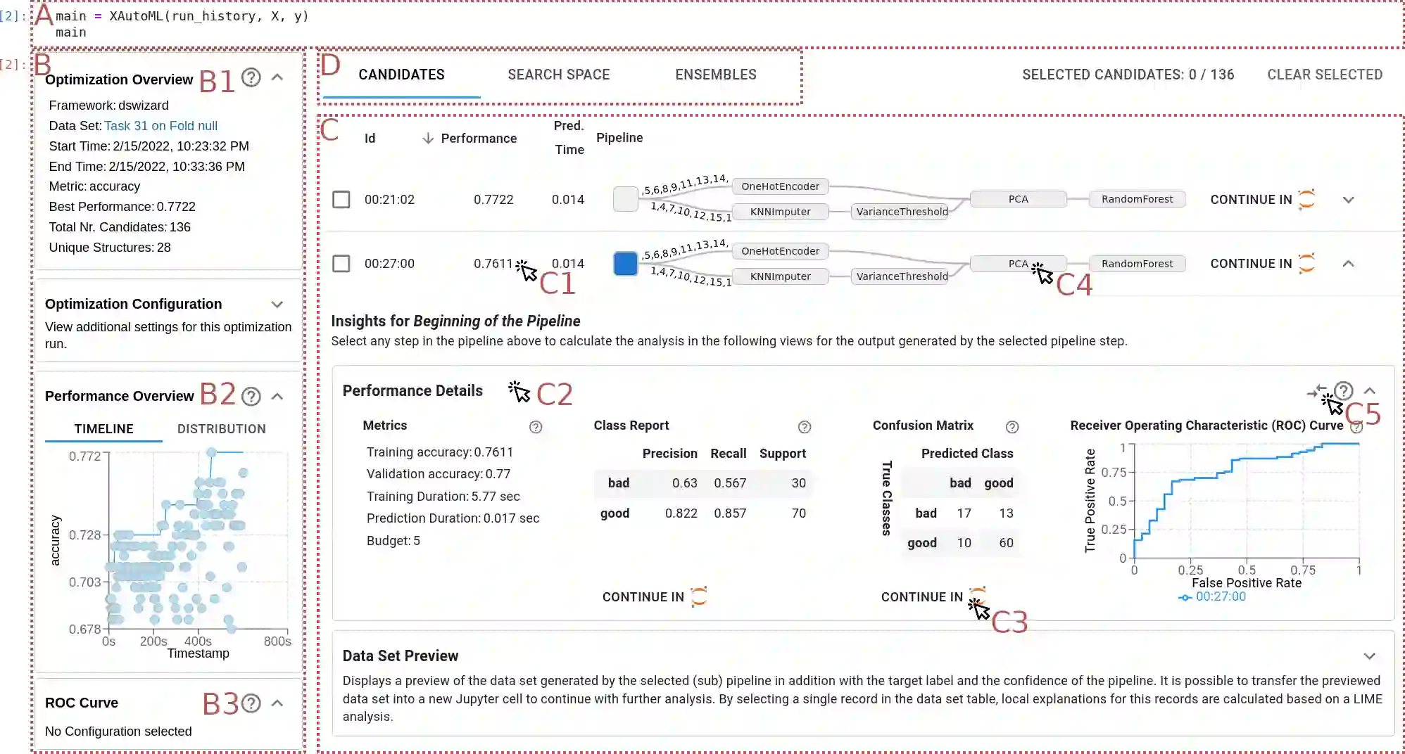 翻译:过去十年来,提出了各种自动机器学习系统(Automal),以建立终端到终端机学习(ML)管道,尽量减少人际互动,尽管这种自动合成ML管道能够取得竞争性的性能,但最近的研究表明,用户不相信Automil所建立的模式,因为Automil系统缺乏透明度,而且对建造的ML管道的解释也缺失。在与26名领域专家、数据科学家和在ML领域具有巨大专长的不同专业的Automil研究人员进行的需求分析研究中,我们收集了建立对Automal的信任的详细信息需求。我们提出了XAutomoML,这是一个解释任意自动自动合成ML优化程序和由AutomoML建造的ML管道的交互式视觉分析工具。XAutomotML将互动视觉化与从可解释的人工智能(XAI)的既定技术相结合,以使完整的自动解算程序透明和可解释。通过将XAutomotML与JupetLab相结合,有经验的用户根据从XAututimML获取的信息,通过一个高效的用户分析,验证了我们从XAutML获得的用户的高效分析方法。