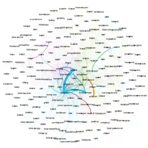E-commerce provides an efficient and effective way to exchange goods between sellers and customers. E-commerce has been a popular method for doing business, because of its simplicity of having commerce activity transparently available, including customer voice and opinion about their own experience. Those experiences can be a great benefit to understand customer experience comprehensively, both for sellers and future customers. This paper applies to e-commerces and customers in Indonesia. Many Indonesian customers expressed their voice to open social network services such as Twitter and Facebook, where a large proportion of data is in the form of conversational data. By understanding customer behavior through open social network service, we can have descriptions about the e-commerce services level in Indonesia. Thus, it is related to the government's effort to improve the Indonesian digital economy ecosystem. A method for finding core topics in large-scale internet unstructured text data is needed, where the method should be fast but sufficiently accurate. Processing large-scale data is not a straightforward job, it often needs special skills of people and complex software and hardware computer system. We propose a fast methodology of text mining methods based on frequently appeared words and their word association to form network text methodology. This method is adapted from Social Network Analysis by the model relationships between words instead of actors.