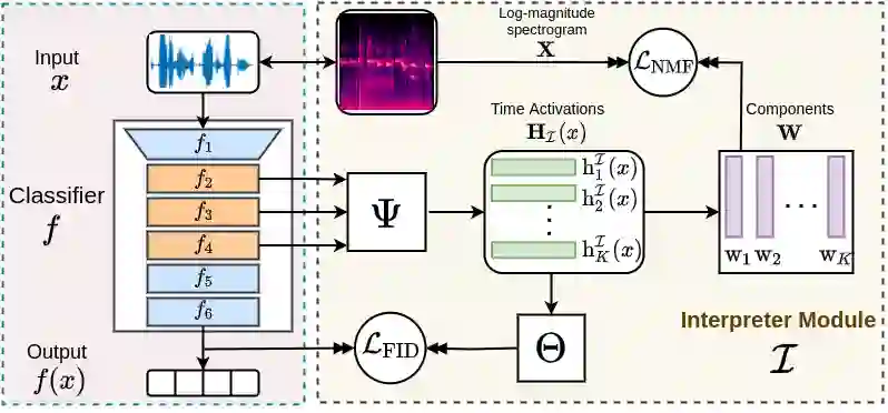 翻译:本文涉及对音频处理网络的控件后可解释性。 我们的目标是解释网络决定的高级音频物体,这些物品也可为终端用户所收听。 为此,我们提出新的翻译设计,纳入非负矩阵因子化(NMF ) 。 特别是, 精心规范的口译模块经过培训,将目标网络的隐性层表示作为输入,并生成作为中间输出的中位输出的预感性NMF组件的时间激活。 我们的方法允许我们生成直观的音频解释,以明确加强与网络决定最相关的部分输入信号。 我们展示了我们的方法对大众基准的适用性,包括现实世界多标签分类任务。
