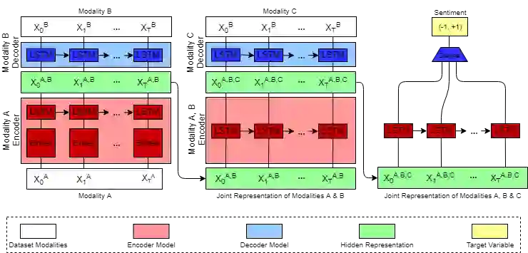 翻译:多式机器学习是一个核心研究领域,涉及语言、视觉和声学模式。多式学习的核心挑战涉及学习表现,能够处理和联系多种模式的信息。在本文件中,我们提出两种方法,即采用顺序顺序(Seq2Seq2Seq)方法,在不受监督的情况下学习联合多式表现:一种\textit{Seq2Seq2Seqmodality Transformation Production}和一种\textit{Seq2Seq2Seqmodility Transferation model}。我们还探讨这些后继模式的多式联运投入和产出的多种差异。我们利用CMU-MOSI数据集进行的多式情绪分析实验表明,我们的方法学习了信息丰富的多式联运表现,这些表现超越了基线,并在多式情绪分析上取得了更好的业绩,特别是在双式案例中,我们的模式能够将F1分数提高12分。我们还讨论了多式Seq2Seqeq方法的未来方向。