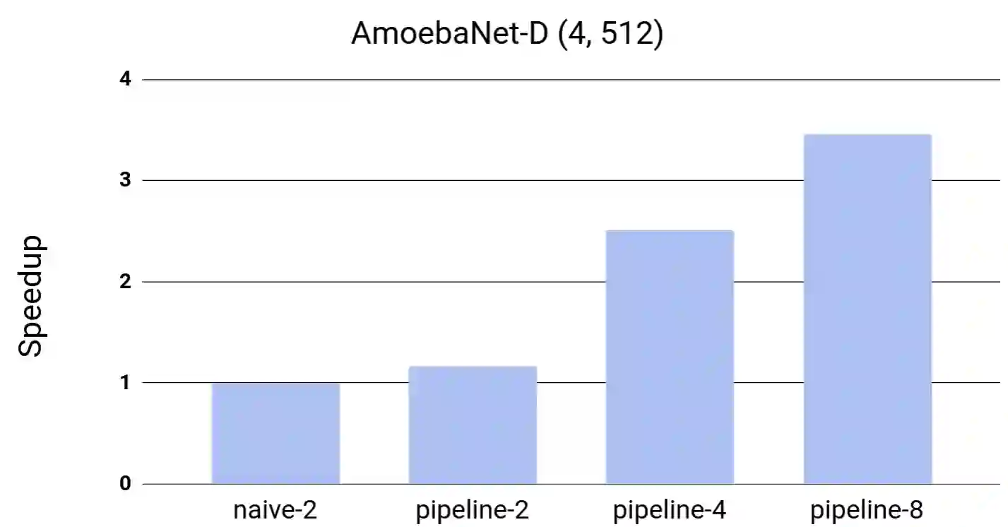 翻译:GPipe是一个可扩缩的管道平行库,可以让巨型深神经网络学习。 它通过加速器和管道执行将网络层隔开, 以达到高硬件利用率。 它利用重新计算来尽量减少激活内存的使用。 例如, 它使用8个加速器的分割器, 它能够训练25x以上的网络, 展示其可扩缩性。 它还保证计算出的梯度保持一致性, 不论分区数量多少。 它在模型参数方面没有任何变化, 几乎直线速度加快: 当使用 4x 更多的加速器时, 训练同样的模型更快到3.5x。 我们在图像网络上培训了55 700万个参数 AmoebaNet 模型, 并在图像网络上实现了一个新的最先进的84.3% 1% / 97.0% 5 精确度 。 最后, 我们使用这个学习的模型作为初始化模型, 用于培训7个不同的流行图像分类数据集, 并获得超过其中5个最佳公布数据集的结果, 包括将CIFAR- 10 10 精确度提高到99% 和 CIFAR- 100 精确度达913%。