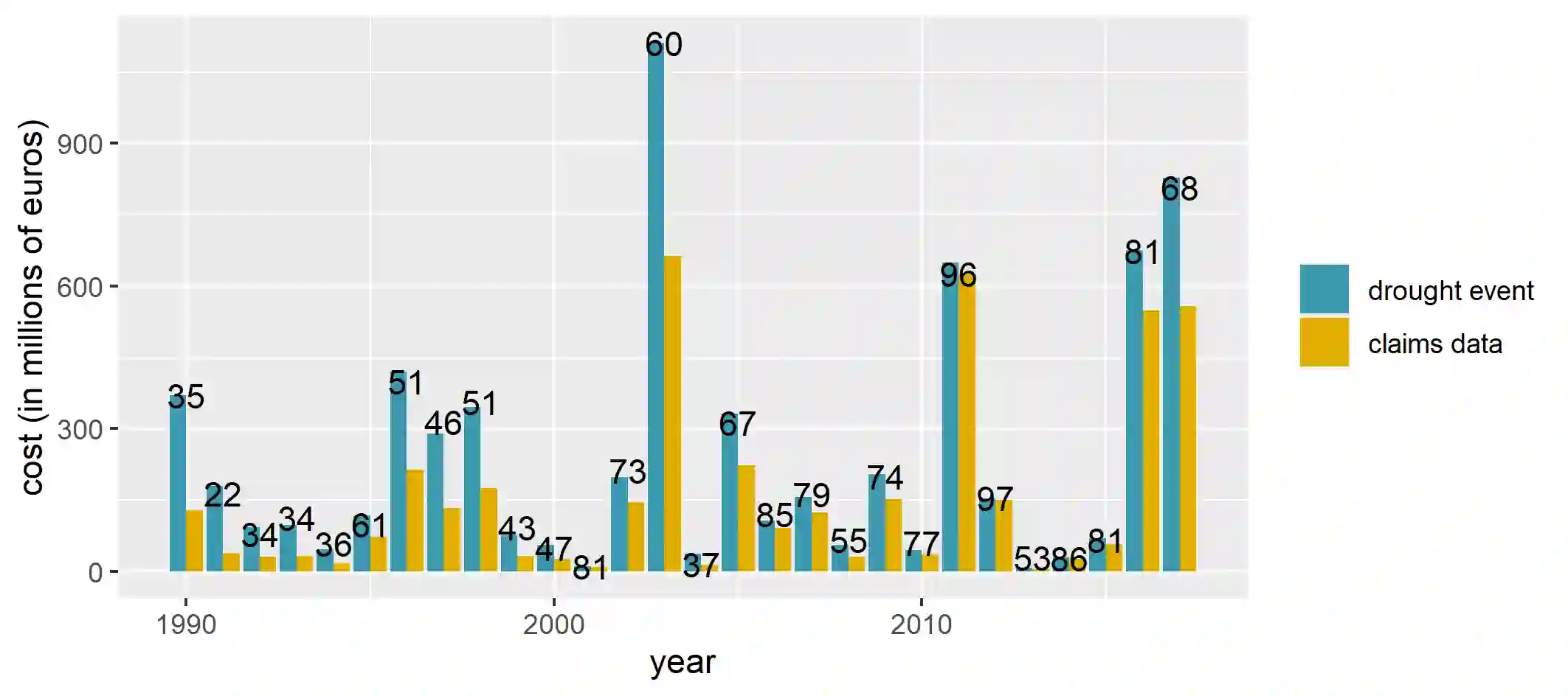 Drought events are the second most expensive type of natural disaster within the legal framework of the French natural disasters compensation scheme. In recent years, droughts have been remarkable in their geographical scale and intensity. We develop a new methodology to anticipate the cost of a drought event in France. The methodology hinges on super learning and takes into account the complex dependence structure induced in the data by the spatial and temporal nature of drought events.