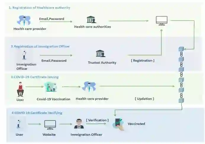 翻译:自不同国家实施不同的移民和旅行政策以来,最近旅行一直具有挑战性;目前,移民官员希望证明每个人对病毒的免疫力;疫苗护照作为证据,证明一个人已经对某一病毒进行负面检测或免疫;就COVID-19而言,持有疫苗护照的人只要能够提供证据证明他们有以前感染或全部COVID-19免疫的COVID-19抗体,就可以进入其他国家;为缩短数据管理的时间和努力,疫苗接种护照系统已经数字化;通过数字化,可以促进联系追踪过程;目前正在使用的“链锁技术”系统在比特币使用者之间数据交换系统中显示了其安全和隐私;数字防疫护照系统可以使用“链式”技术;最终的结果将是基于Etheeum街区链的分散、可追踪、透明、可靠、可审计、可靠、可靠和可信赖的解决办法,从而可以追踪疫苗和疾病历史。