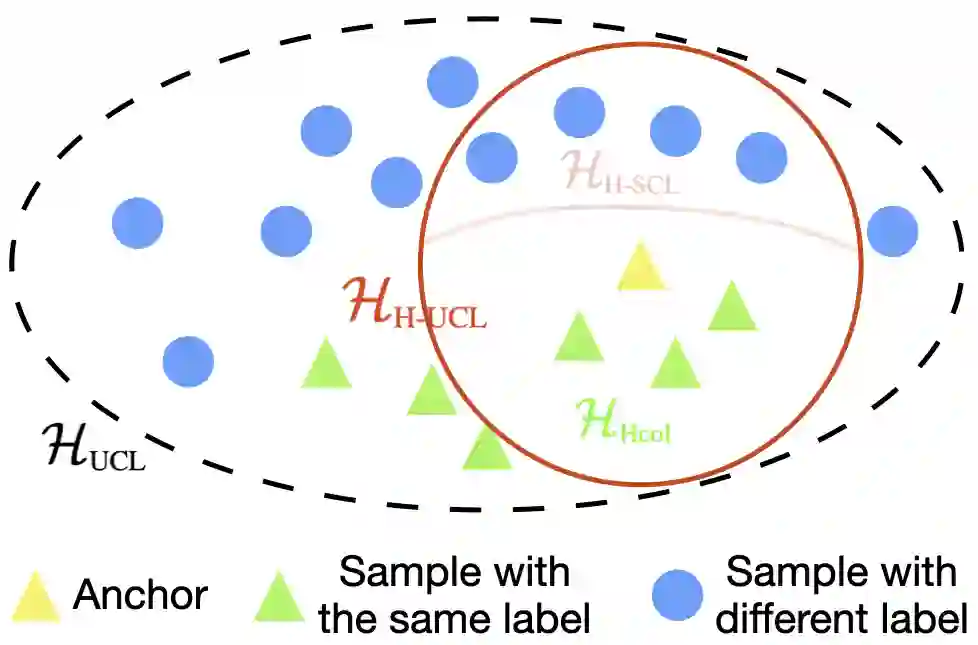 Through minimization of an appropriate loss function such as the InfoNCE loss, contrastive learning (CL) learns a useful representation function by pulling positive samples close to each other while pushing negative samples far apart in the embedding space. The positive samples are typically created using "label-preserving" augmentations, i.e., domain-specific transformations of a given datum or anchor. In absence of class information, in unsupervised CL (UCL), the negative samples are typically chosen randomly and independently of the anchor from a preset negative sampling distribution over the entire dataset. This leads to class-collisions in UCL. Supervised CL (SCL), avoids this class collision by conditioning the negative sampling distribution to samples having labels different from that of the anchor. In hard-UCL (H-UCL), which has been shown to be an effective method to further enhance UCL, the negative sampling distribution is conditionally tilted, by means of a hardening function, towards samples that are closer to the anchor. Motivated by this, in this paper we propose hard-SCL (H-SCL) {wherein} the class conditional negative sampling distribution {is tilted} via a hardening function. Our simulation results confirm the utility of H-SCL over SCL with significant performance gains {in downstream classification tasks.} Analytically, we show that {in the} limit of infinite negative samples per anchor and a suitable assumption, the {H-SCL loss} is upper bounded by the {H-UCL loss}, thereby justifying the utility of H-UCL {for controlling} the H-SCL loss in the absence of label information. Through experiments on several datasets, we verify the assumption as well as the claimed inequality between H-UCL and H-SCL losses. We also provide a plausible scenario where H-SCL loss is lower bounded by UCL loss, indicating the limited utility of UCL in controlling the H-SCL loss.
