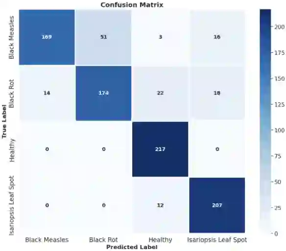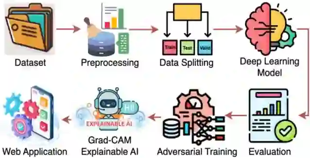 翻译:植物病害诊断对农户的管理决策至关重要,因为植物病害常导致作物减产和品质下降。葡萄叶片病害检测对于保障作物健康生长和提高农业生产率具有重要意义。本研究所用植物病害数据集包含总计9,032张四类别葡萄叶片图像,其中三类为病害叶片,另一类为健康叶片。经过严格预处理后,数据集按70%训练集、20%验证集、10%测试集划分,并部署了InceptionV3和Xception两种预训练模型。Xception模型取得了96.23%的准确率,表现显著优于InceptionV3。研究采用对抗训练提升模型鲁棒性,同时增强可解释性。集成Grad-CAM方法以验证叶片病害区域。最终基于Streamlit框架部署了具备热力图可视化及置信度预测功能的网络应用,实现了鲁棒的葡萄叶片病害分类。