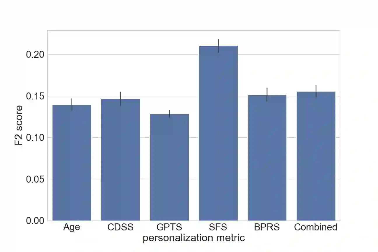 翻译:对行为变化的移动感测模型可以预测精神分裂病患者精神病复发情况,以便及时采取干预措施。深度学习模型可以补充现有的非深入学习模式,通过模拟与预测相关的潜伏行为特征来进行复发预测。然而,鉴于个人之间的行为差异,可能需要模型个性化来进行预测模型。在这项工作中,我们提议重写PredadNet,一个基于长期短期内存(LSTM)的神经网络模型,以进行复发预测。该模型通过使用与特定病人最相似的病人数据进行培训,对特定病人进行感应。一些人口和基线心理健康得分被视为个人化指标,用以进行复发预测。我们调查了个人化对培训数据集特征的影响、学习嵌入和复发预测性表现。我们把Refred PreadNet模型与一个基于深层次学习的异常检测模型进行比较。此外,如果RefreadNet能够补充CRF2Model(一个随机的森林模型,在前期工作中建议采用的是更深的更深的更深的更深的更坏情况组和模板特征),将一些更深层的更深层的更深层的更深层的更深层的坏情况模型作为个人更深层的模型进行。8 和更深层的神经的神经的内分分分数,用来进行自我再测算测算测算测算测算法的模型,用来进行每到每到每到每年的每年的每年的每年的比的每年的计算。每个年的测算法,用于每年的模型,用于每年的测算法,用来算算算算算法,用于每年的计算。每个年的模型用于每年的计算。每个年的计算。每个年都用来进行不断的计算。