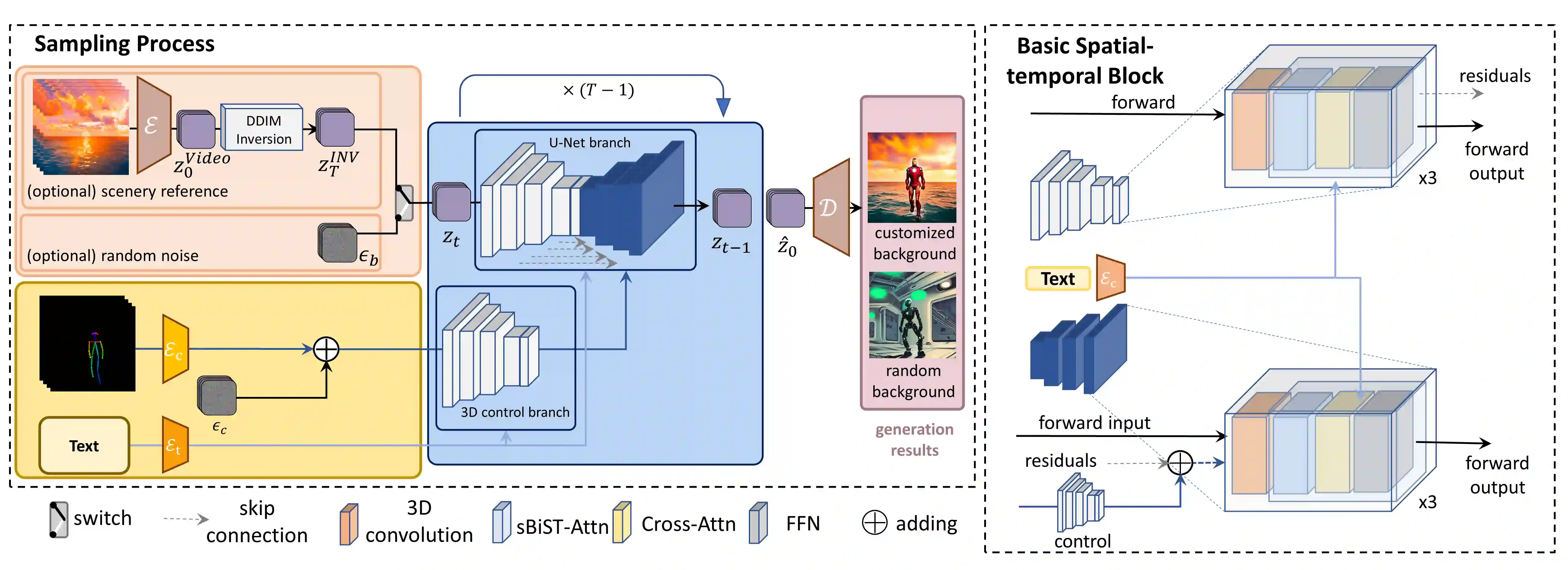 Recent works have successfully extended large-scale text-to-image models to the video domain, producing promising results but at a high computational cost and requiring a large amount of video data. In this work, we introduce ConditionVideo, a training-free approach to text-to-video generation based on the provided condition, video, and input text, by leveraging the power of off-the-shelf text-to-image generation methods (e.g., Stable Diffusion). ConditionVideo generates realistic dynamic videos from random noise or given scene videos. Our method explicitly disentangles the motion representation into condition-guided and scenery motion components. To this end, the ConditionVideo model is designed with a UNet branch and a control branch. To improve temporal coherence, we introduce sparse bi-directional spatial-temporal attention (sBiST-Attn). The 3D control network extends the conventional 2D controlnet model, aiming to strengthen conditional generation accuracy by additionally leveraging the bi-directional frames in the temporal domain. Our method exhibits superior performance in terms of frame consistency, clip score, and conditional accuracy, outperforming other compared methods.